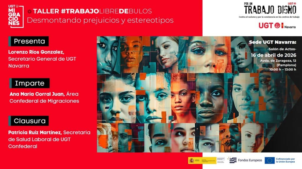 TALLER DE SENSIBILIZACIÓN #TrabajoLibreDeBulos El Vicesecretario General de Política Sindical de UGT Confederal y el Secretario General de UGT Navarra, en el marco del proyecto «Por un Trabajo Digno. Contra el racismo y por la convivencia en los centros de trabajo», financiado por el Ministerio de Inclusión, Seguridad Social y Migraciones (MISSM) y cofinanciado por […]